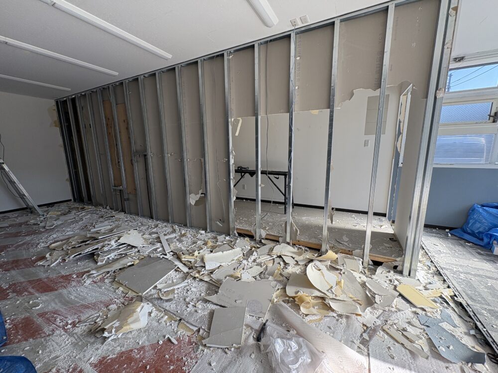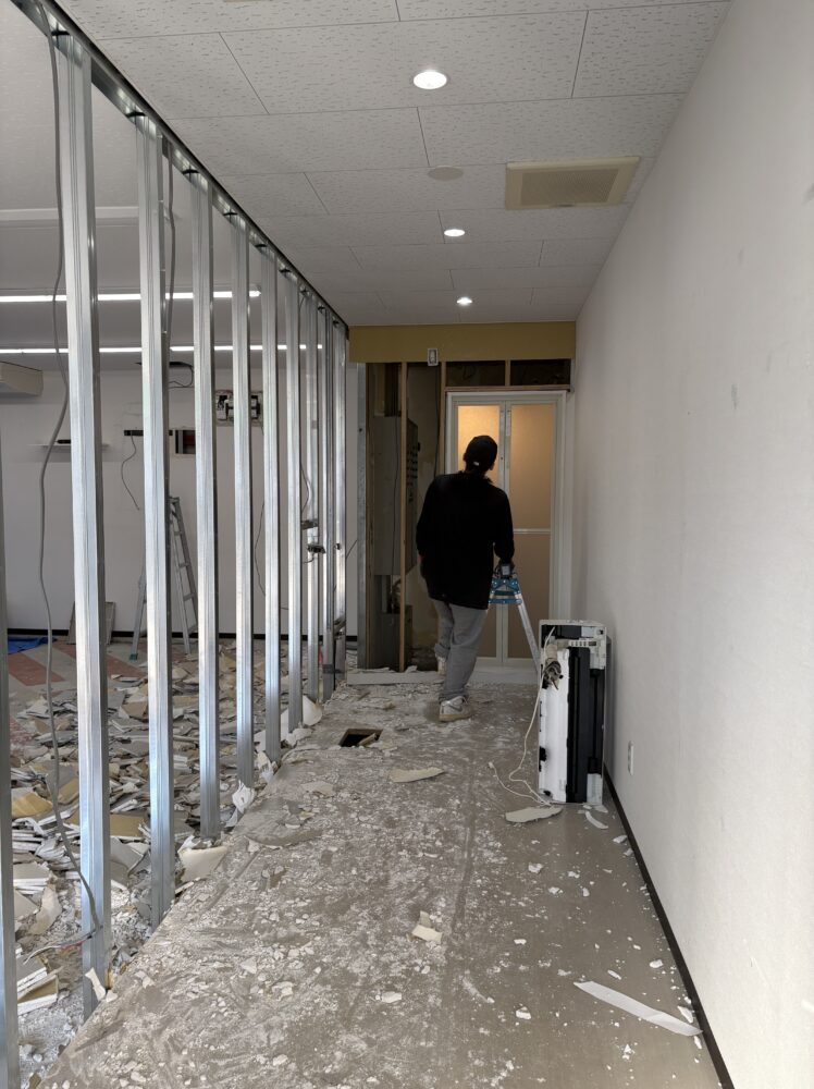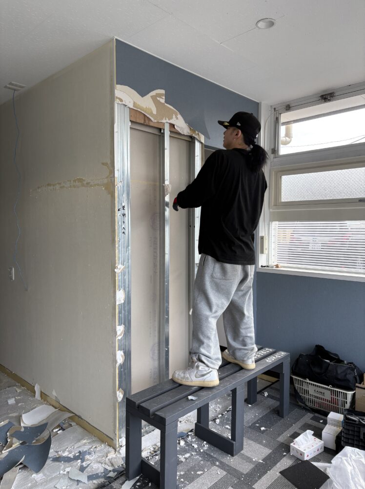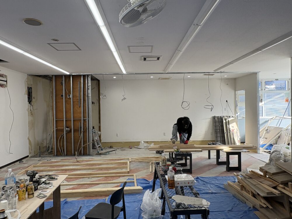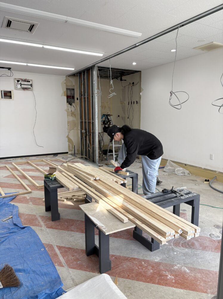 ただ、今回は面積が広いのと電気水道などの専門工事が発生することから、職人さんにも力を借りて、せっせと工事を進めています。
